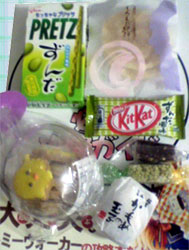 (単にどの土産菓子を渡すかというだけのクジ。黄色、橙、緑のうち、緑はハズレで柚子胡椒チョコ。)